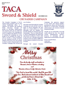 Our donors’ generosity will allow TACA to provide a Christ-centered education while striving for academic excellence to all who desire it. As a private school, TACA is a non-profit, 501(c)(3) tax-deductible organization. We do not receive federal, state, or local financial support from taxpayers. However, we welcome donations that provide funding for need-based tuition assistance and capital improvements when needed. No gift is too small or too large! Will you join us in our mission to train up the next generation of Christian leaders? To become part of this great ministry, donate today!